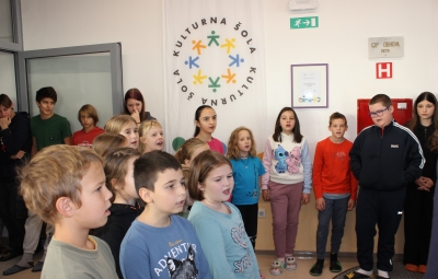 Danes smo z izobešanjem zastave počastili naziv, ki ga je naša šola prejelaz letošnjim šolskim letom. Izjemno sem ponosna in vesela, da je Javni sklad Republike Slovenije za kulturne dejavnosti prepoznal in nagradil naš trud z nazivom Kulturna šola. Naziv je rezultat dolgotrajnega dela, predanosti in sodelovanja vseh zaposlenih, učencev, staršev in lokalne skupnosti. Vsak dan se trudimo, da je kultura del našega vsakodnevnega delovanja in obnašanja. Zadnja leta smo skupaj ustvarjali mnoge kulturne dogodke, gledališke predstave, likovne razstave, bralne projekte, pevske, plesne ter folklorne nastope. Naša šola je postala prostor, kjer vsak učenec lahko izrazi svoj talent in svojo zgodbo.