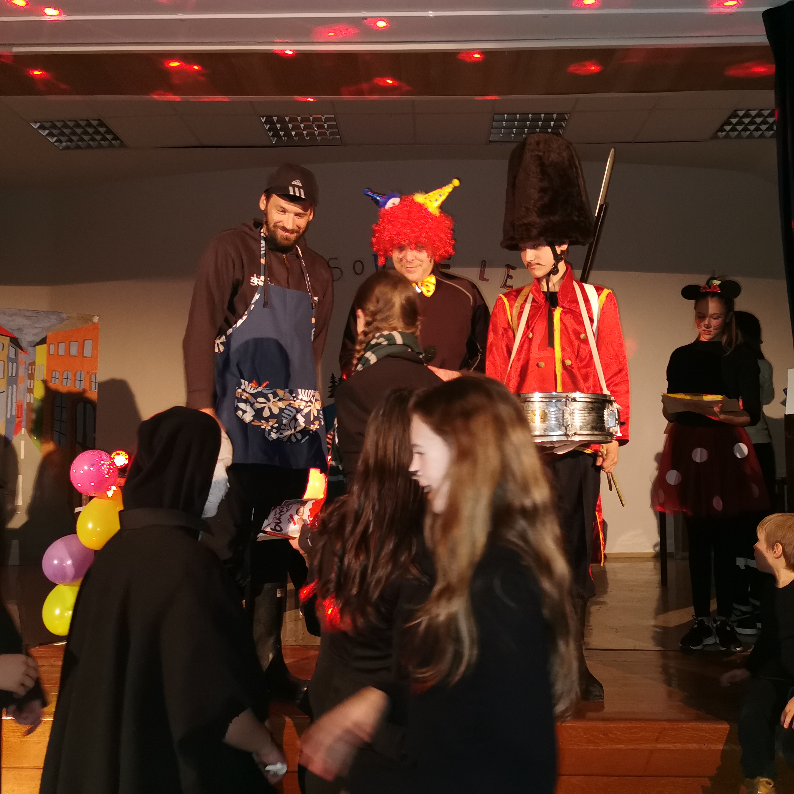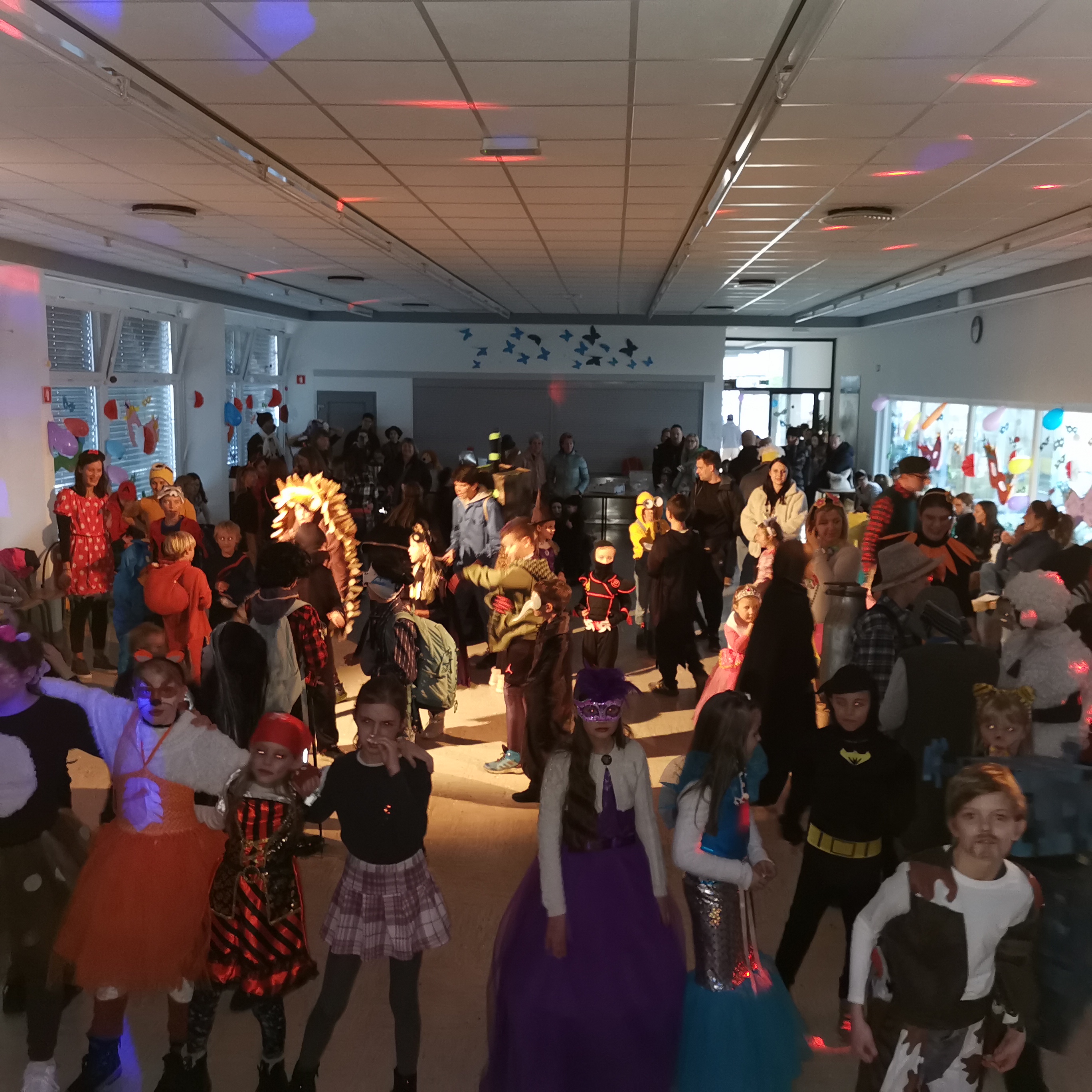 Tudi letos, v torek, 13. 2., so se šolske maškare zbrale na tradicionalnem ŠOLSKEM PUSTNEM SPREVODU IN PLESU, ki ga je organiziral 8. razred. V lepem vremenu se je zbralo veliko število izvirnih posamičnih in skupinskih mask. Po 45 minutnem sprevodu je sledil ples z ocenjevanjem mask in različnimi presenečenji. Poleg toplega čaja je bilo na voljo tudi 200 krofov, za donacijo katerih se zahvaljujemo podjetju Spar Slovenija.