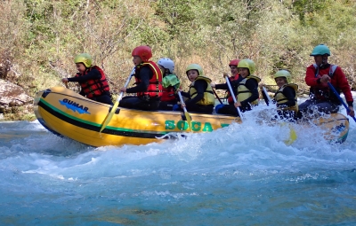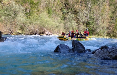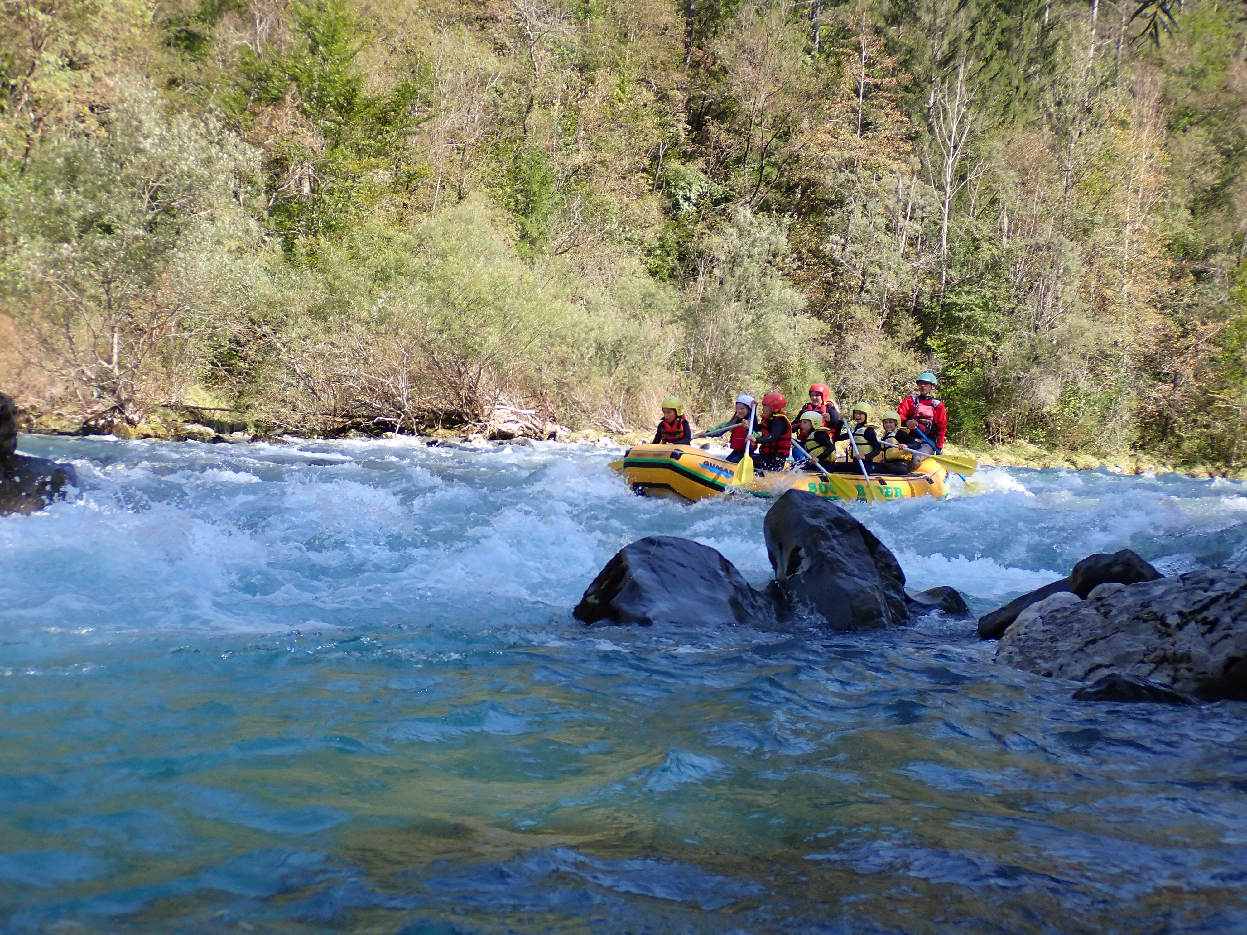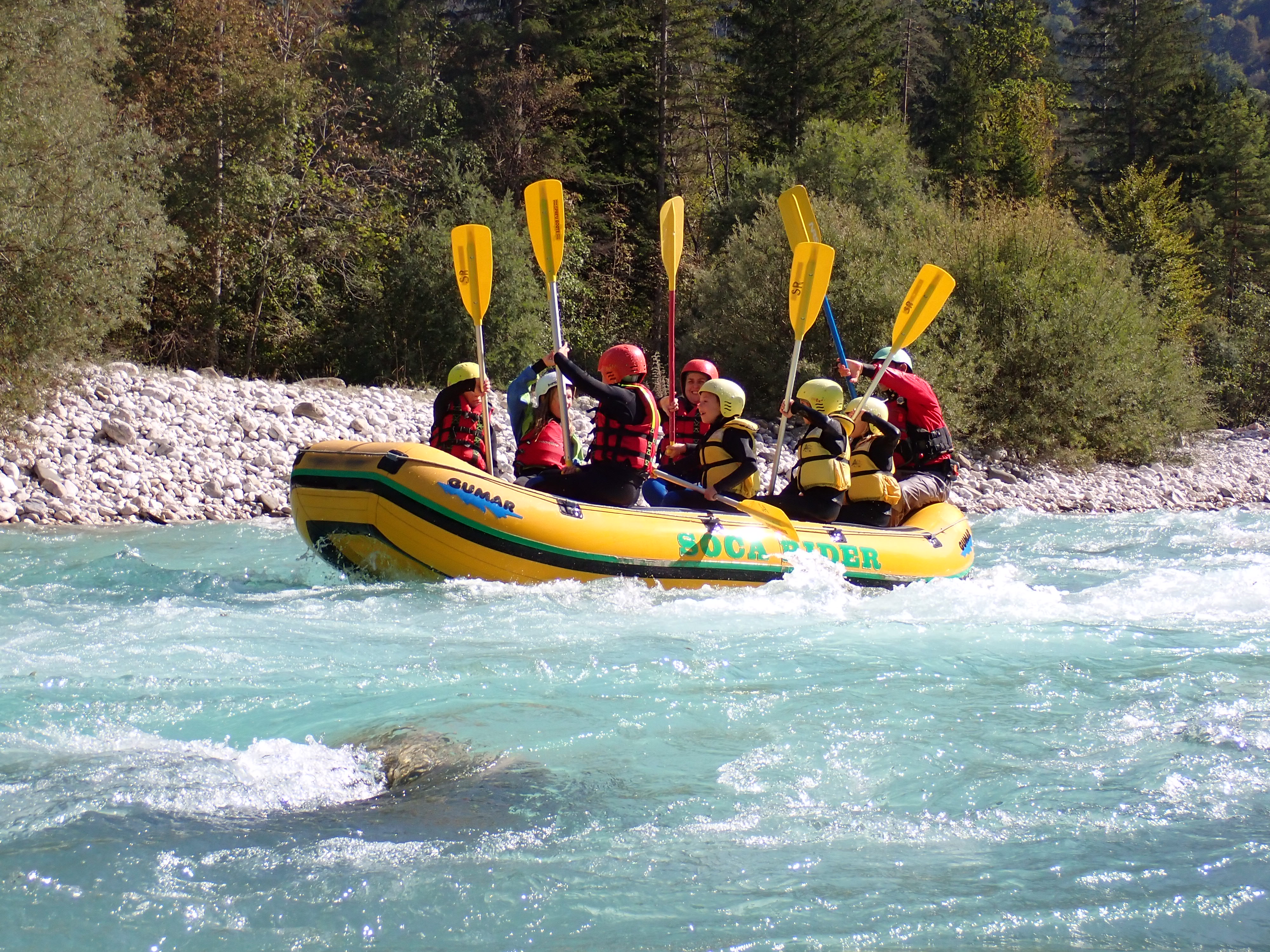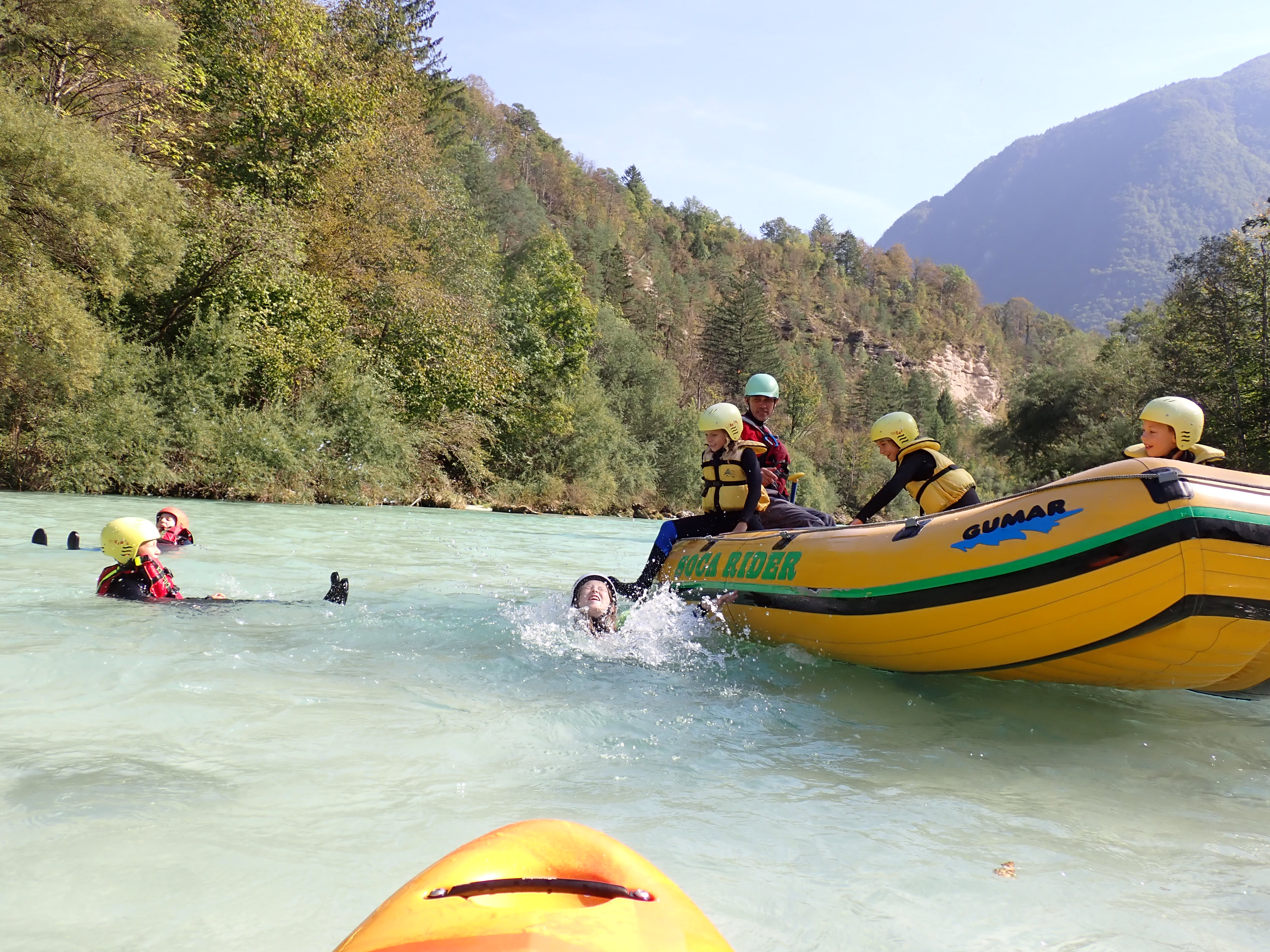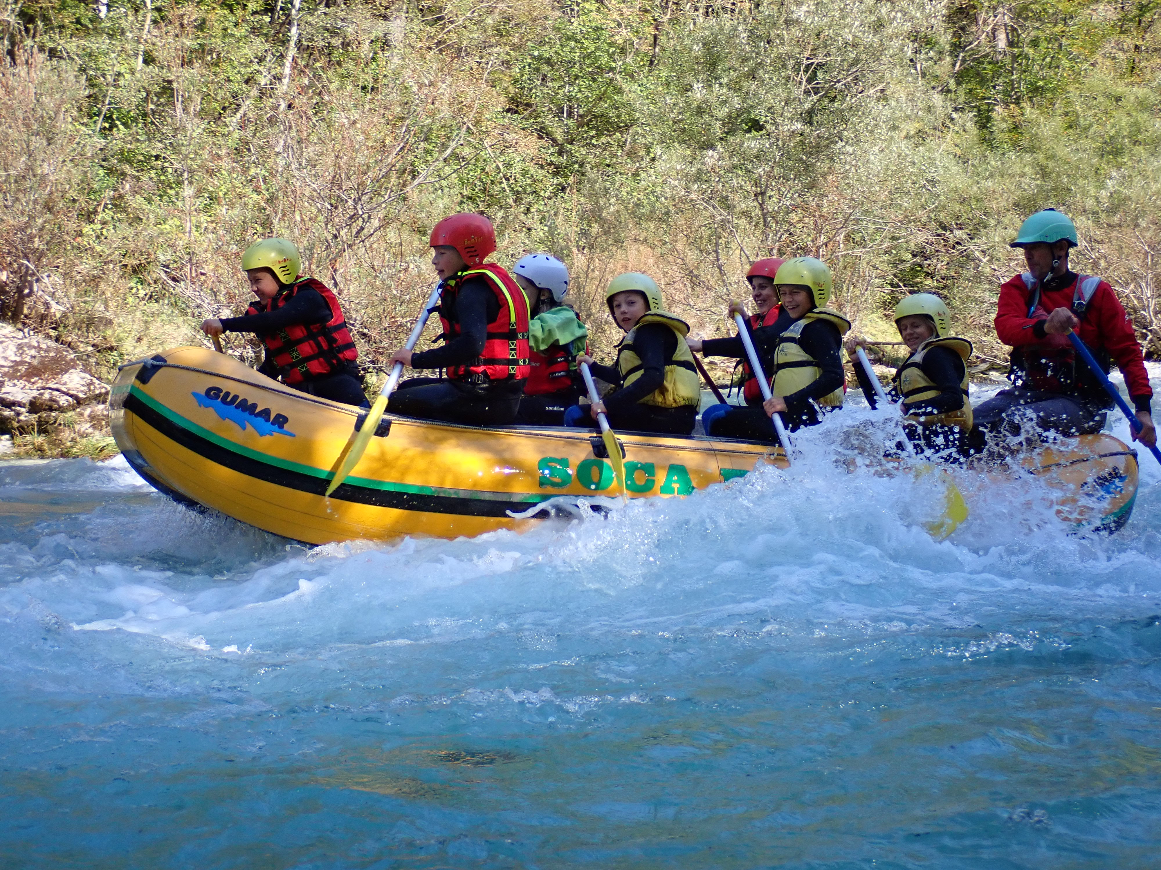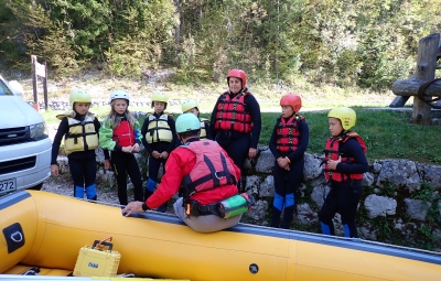 Z učenci 4. in 5. razreda, PŠ Soča smo v sredo, 27. 9. 2023, imeli športni dan in sicer smo šli na rafting na reki Soči. Rafting sta nam omogočila starša enega izmed učencev 4. razreda. Učenci so se športnega dne zelo veselili in kot je vidno na fotografijah so v njem neizmerno uživali. Za večino učencev je bilo to doživetje prvi krat, zato smo pred začetkom imeli kar malce treme. Navodilom pred začetkom veslanja in napotkom kako veslati je sledila akcija. Učencem je šlo odlično od rok in kljub mrzli vodi so pogumno zaplavali v smaragdni lepotici.