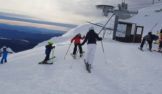 Učenci Podružnične šole Soča smo preživeli zanimiv smučarski dan na Kaninu. Poleg učitelja Miha sta imela z nami "mini šolo smučanje" še Urška in Dejan. Bilo je zelo lepo.