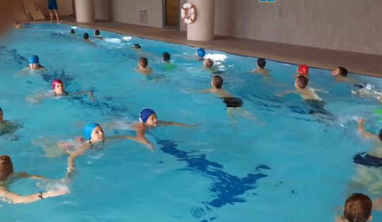 V četrtek, 8.12.2022 smo imeli športni dan, plavanje v bazenu. Skupaj z učenci 5. razreda iz Bovca in Žage ter nekaterimi učenci višjih razredov smo preživeli lep dan v bazenu v hotelu Špik v Gozdu Martuljku. Petošolci smo imeli preverjanje znanja plavanja.
