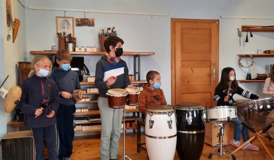 Učenci 5.razreda iz Bovca in učenci Podružnične šole Soča smo odkrivali sozvočja  v svetu glasbe ter spoznavali skrivnosti velikih slikarjev v Groharjevi hiši  v Sorici.
