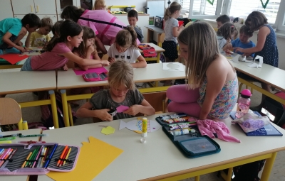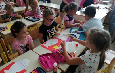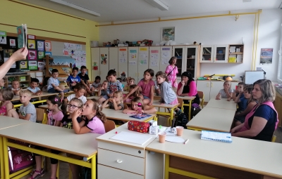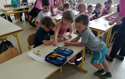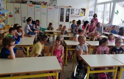 Danes, v sredo, 19. 6. so nas v 1. A obiskali otroci iz vrtca, iz skupine škratki. Pokazali smo jim, kaj smo letos počeli, kaj smo se novega naučili. Skupaj smo prebrali pravljico Reševanje malega Nema in izdelali ribice. Vsak škratek je imel ob sebi za pomoč dva naša učenca. Bilo je zanimivo in zabavno. Upamo, da smo jim prikazali kanček dobrega vzdušja v šoli, da bodo v jeseni z veseljem zakorakali v 1. razred.