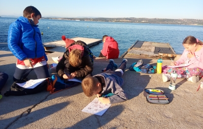 Pozdravljeni! Sporočamo vam, da smo si ogledali Luko Koper in srečno prispeli v Žusterno. Lep pozdrav učenci 5. razreda in učitelji