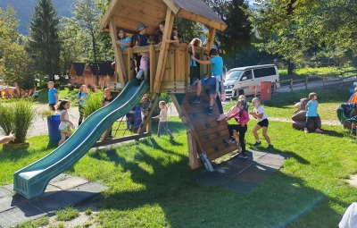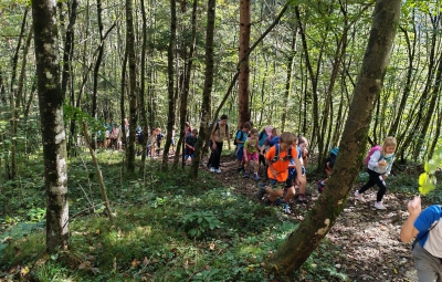 Danes so učenci od 1. do 3. razreda matične šole ter učenci podružnične šole Žaga in Soča preživeli aktiven in razigran športni dan v naravi. Odpravili smo se na jesenski pohod v Čezsočo, mimo Jablanc, kjer smo se ustavili za malico in uživali v klepetu s sošolci. Pot smo nadaljevali skozi kamp Vodenca. Nekaj minutk smo se sprostili na tamkajšnjih igralih in nato nadaljevali pot čez Raveljnik nazaj do šole. Prijetno utrujeni smo zaključili naš prvi športni dan.