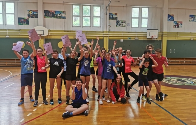 V preteklem tednu (od 10. do 13. 5. 2021) smo s posameznimi razredi (3., 6., 7., 8. in 9.) izvedli športne dneve na temo ŠPORTNE IGRE. Spremenljivo vreme nam ni pokvarilo načrtov, saj smo športne dneve izvajali v telovadnici. Učenci posameznih razredov so se po ekipah pomerili med seboj v različnih športnih igrah (med dvema ognjema, teeball, štafetne igre, odbojka, košarka ...). Najuspešnejše ekipe so bile nagrajene z diplomami. Nekaj utrinkov si oglejte spodaj.