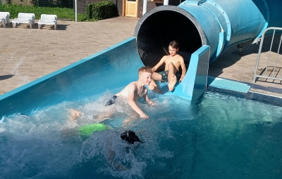 Učenci in učenke 7. razreda, ter učitelji spremljevalci smo zadnji dan šole v naravi izkoristili še za kopanje v Termah Ptuj. Da je bila pot nazaj domov nekoliko bolj zanimiva pa smo se do Ljubljane zapeljali z vlakom, kjer nas je že čakal avtobus za Bovec.