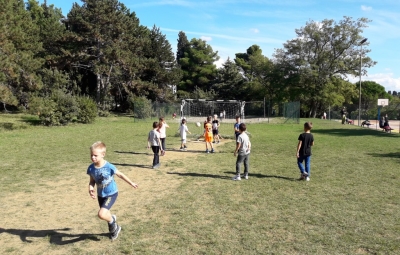 Poleg plavanja smo dan preživeli ob različnih športnih aktiovnostih na igrišču, na prostem ob obali pa imeli pouk. Večer smo si popestrili z ogledom animiranega filma.