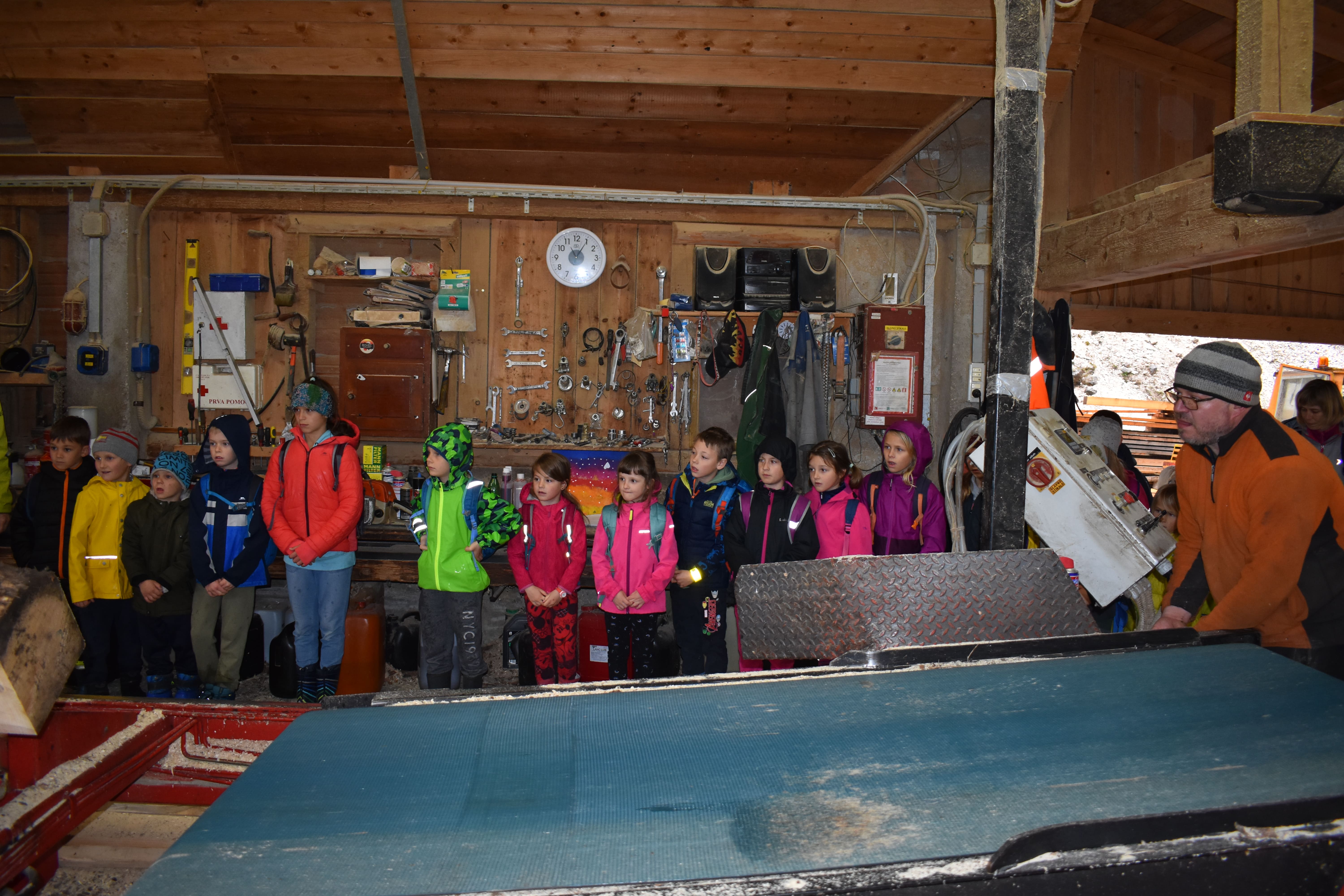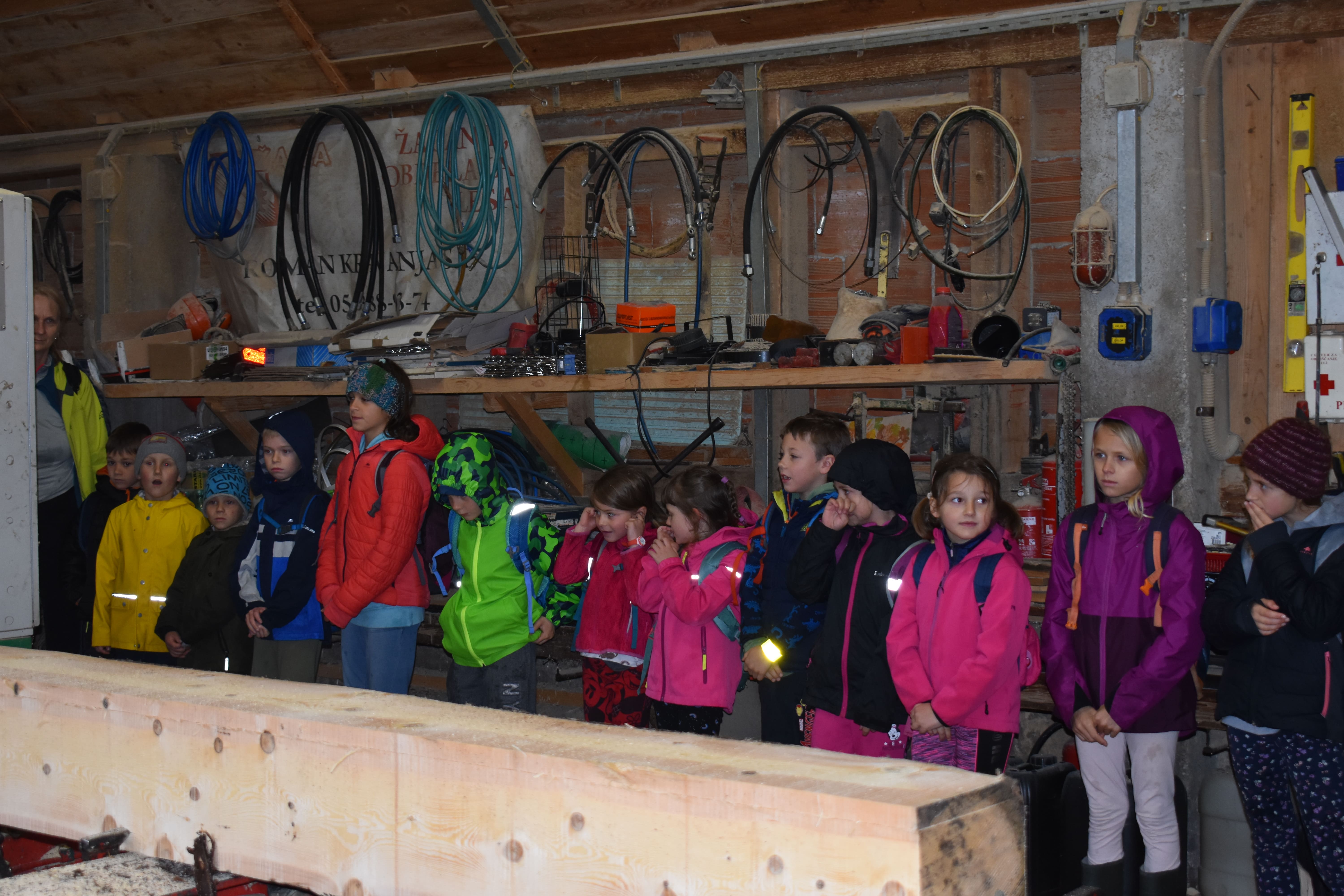 Že takoj zjutraj smo se peš odpravili po Soški poti proti Trenti. Stezica nam je ponujala marsikatere lepote in zato smo se večkrat ustavili in opazovali naravo. Pot nam je prekrižala celo divja raca, ki se ji je mudilo po reki navzdol. Prvo žago smo videli tik ob prihodu iz gozda pri hiši v Mlinu. Ta žaga ni več delujoča, je pa pred leti žagala lesene hlode z žago, ki jo je poganjala voda. Pravili so ji Venecijanka. Ob nadaljevanju poti so nam tu in tam ponagajale dežne kapljice, zato smo zeleno pokrajino pobarvali z živopisanimi dežniki. Vseeno nam je bilo vreme naklonjeno, saj smo suhi prišli do žage v Trenti, kjer nam je gospod Roman pokazal, kaj vse delajo na žagi. Od blizu smo videli razrez debla in obdelavo lesenih desk. Izvedeli smo, da v tej žagi režejo največ smreke in macesne, ki jih potrebujejo za izdelavo streh in drugih izdelkov.