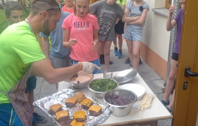 Tudi sedmarji smo se letos na tabor v Sočo odpravili s kolesi. Po uri in pol kolesarjenja smo v popoldanskem času prispeli na cilj, kjer smo se najprej namestili po sobah. Dobro uro časa smo namenili za športne igre, sledilo je pripravljanje večerje, v zaključku dneva pa sprehod, nadaljevanje iger in zasluženi počitek.