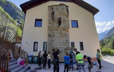 Učenci so se preizkusili v plezanju na umetni steni, kar sta jim omogočila izkušena plezalca iz Bovca.