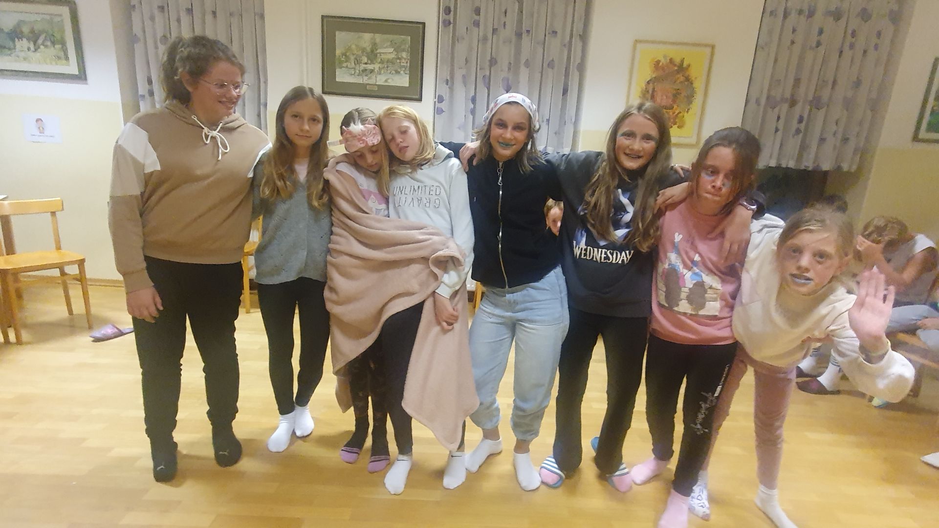 Popoldansko sonce nas je zvabilo na daljši sprehod, uživali smo v igrah na prostem, zvečer pa so učenci pripravili zabavne skeče in zaplesali v disko vzdušju. Naslednji dan nas je obiskal policist s poučnim predavanjem o nasilju in predstavnika podjetja Mahle z zanimivo predstavitvijo krožka. Na koncu so učenci svoje vtise s tabora zapisali in narisali. Vsi smo zelo uživali.