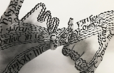 Pri izbirnem predmetu likovno snovanje so učenke spoznale osnove kaligrafije. Pisavo so povezale s fotografijo in vizualnimi mediji. Dekleta so fotografirala svoje dlani ali sence dlani v sporočilnih gestah in jih natisnile na format A3. Sporočilnost fotografiranih gest so dopolnile z risbo in prostoročnimi napisi, ki so sporočilnost vizualnega medija razjasnili in še bolj poudarili.