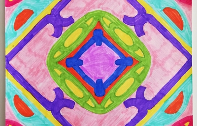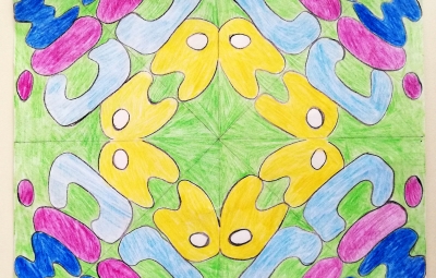 V 6. razredu so se pri neobveznem izbirnem predmetu ukvarjali s prostoročno pisavo v malo drugačni obliki. Učenke so napisale svoja imena in jih zrcalile po načelih radialne simetrije. Iz svojih imen so ustvarile čudovite vzorce, ki so jih obogatile z živimi barvami.