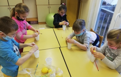 V prvem razredu so pisali z roko skrivno sporočilo, in to z limoninim sokom!