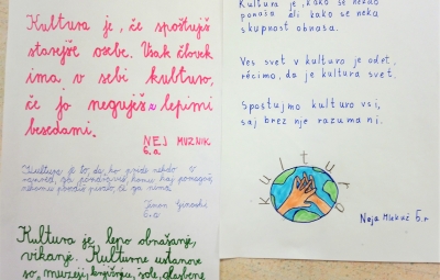V projekt Teden pisanja z roko so se vključili tudi učenci od 6. do 9. razreda. Obudili so pisanje s pisanimi črkami, na kar so nekateri skoraj pozabili. Oblikovali so vabilo na kulturno prireditev ob slovenskem kulturnem prazniku in ustvarjali lepe misli o kulturi.