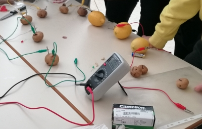Odkrili smo, da si lahko LED lučko prižgemo tudi s pomočjo limon in krompirja. Vsak učenec pa je samostojno izdelal tudi električni krog.