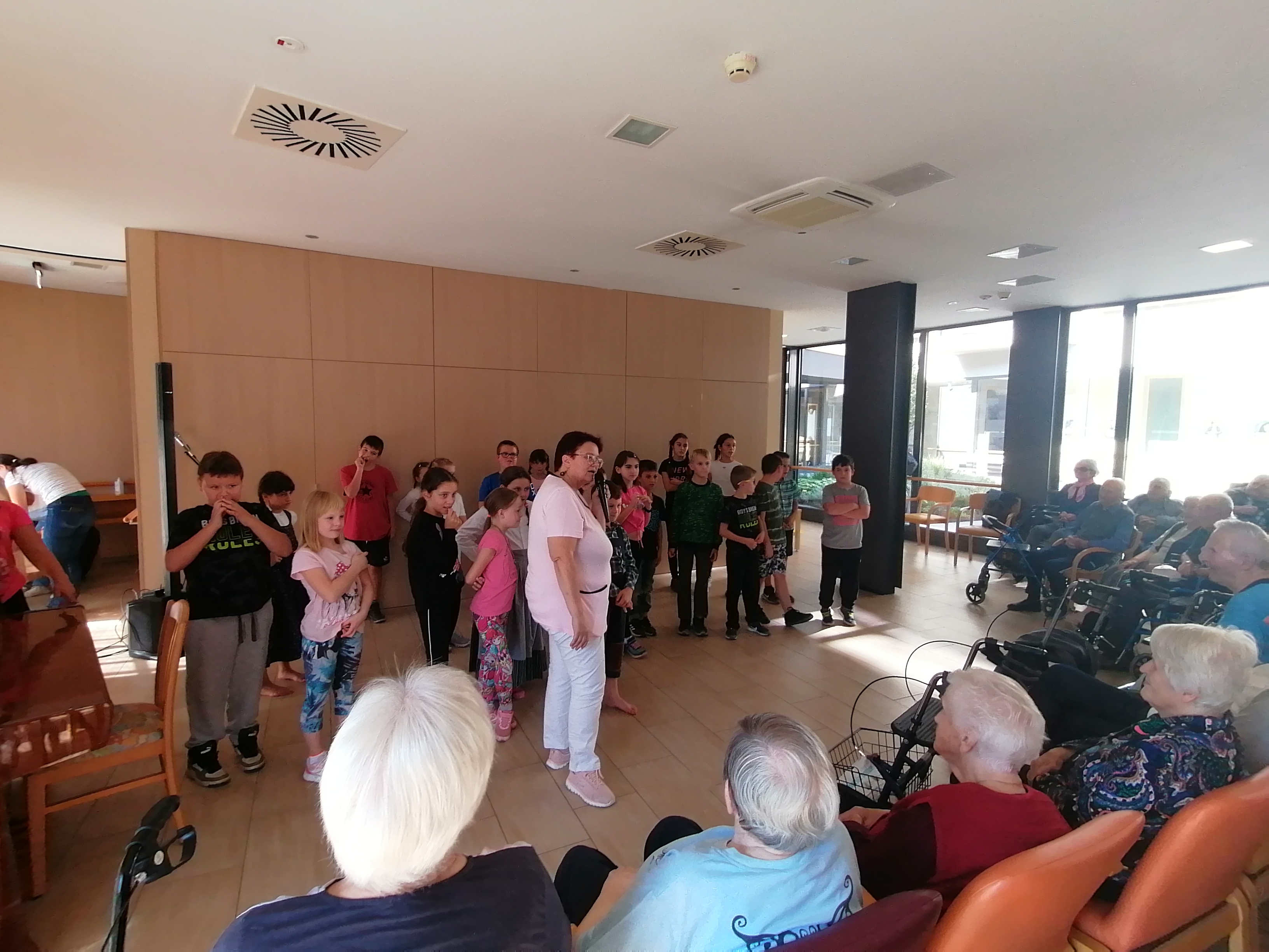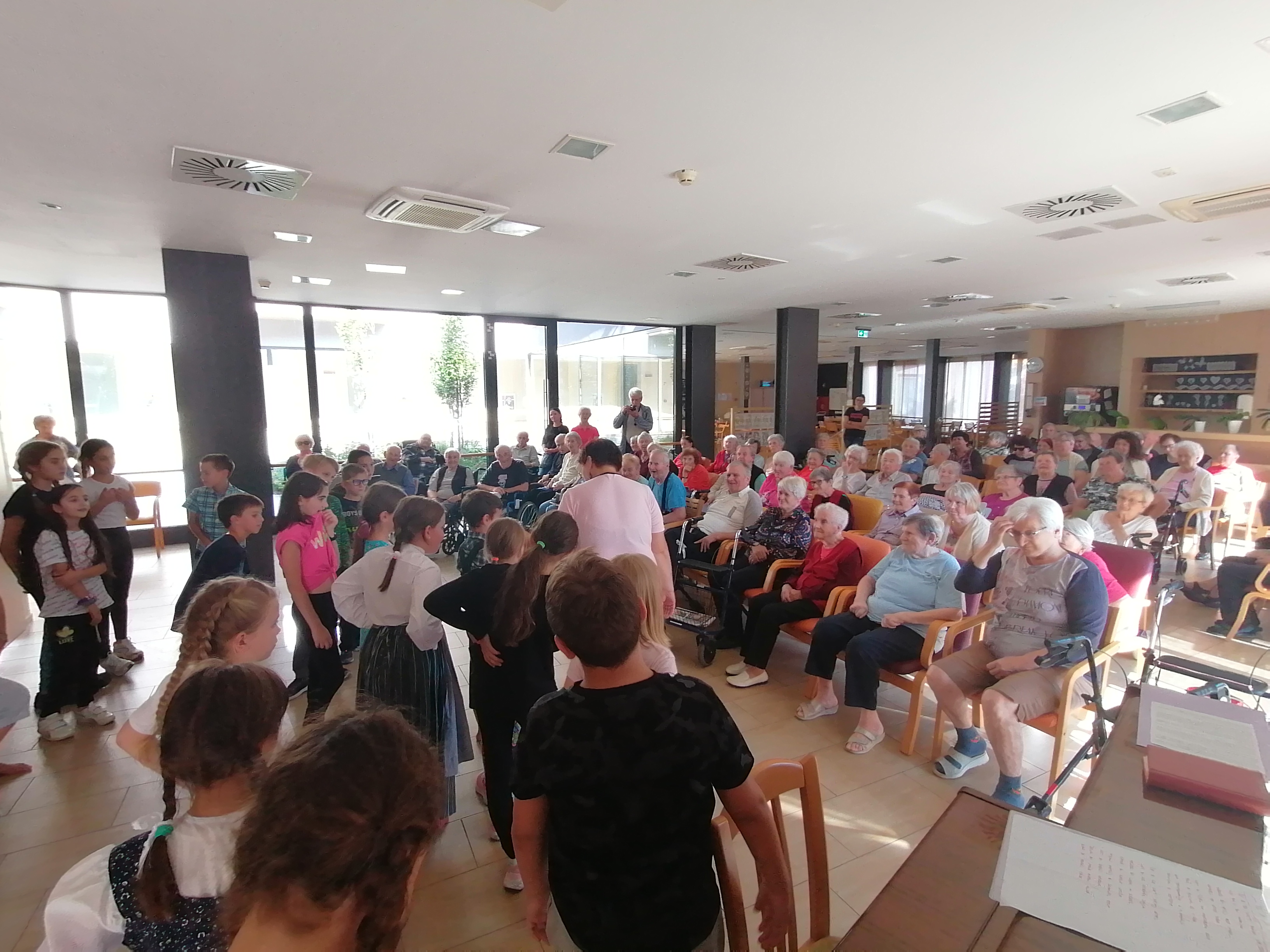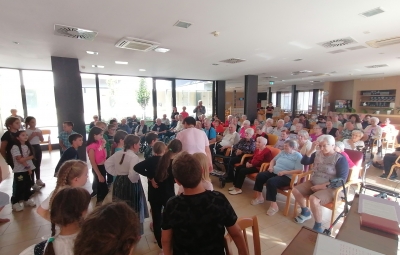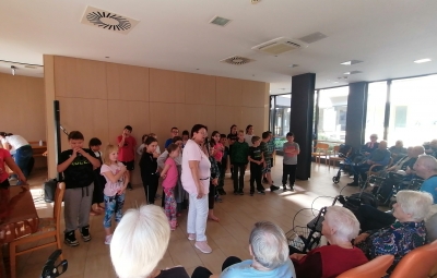 V sklopu projekta Pokloni čas, polepšaj dan! in svetovnega dneva starejših, ki smo ga praznovali 1. oktobra, smo dan zaključili v domu za starejše občane, kjer smo skupaj z osnovnošolsko folklorno skupino pripravili krajši kulturni program in prebivalcem doma polepšali dan s pesmijo, igro in plesom.