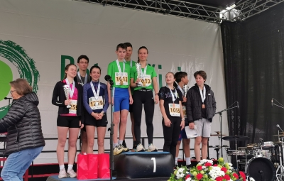 Učenci in učenke OŠ Bovec so se v soboto, 7. 5. 2022, zgodaj zjutraj z avtobusom odpeljali proti prestolnici, kjer so se pomerili v teku moških, ženskih in mešanih trojk na 3 km. V konkurenci 115 ženskih trojk je naša trojka (Pia Kavs, Niki Mlekuž Kamarić in Nina Komac) osvojila 4. mesto. Med 83 moškimi trojkami so naši učenci (Žiga Pretner, Matic Žagar in Nil Kavs) osvojili 5. mesto. Najuspešnejša je bila naša mešana trojka (Manca Mlekuž, Mathias Mlekuž in Kimi Melihen), ki je osvojila 1. mesto v konkurenci 33 mešanih trojk. Čestitke vsem udeleženim.