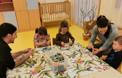 Delavnice so se udeležili vsi zdravi starši in otroci, za kar se vzgojiteljici lepo zahvaljujeva.