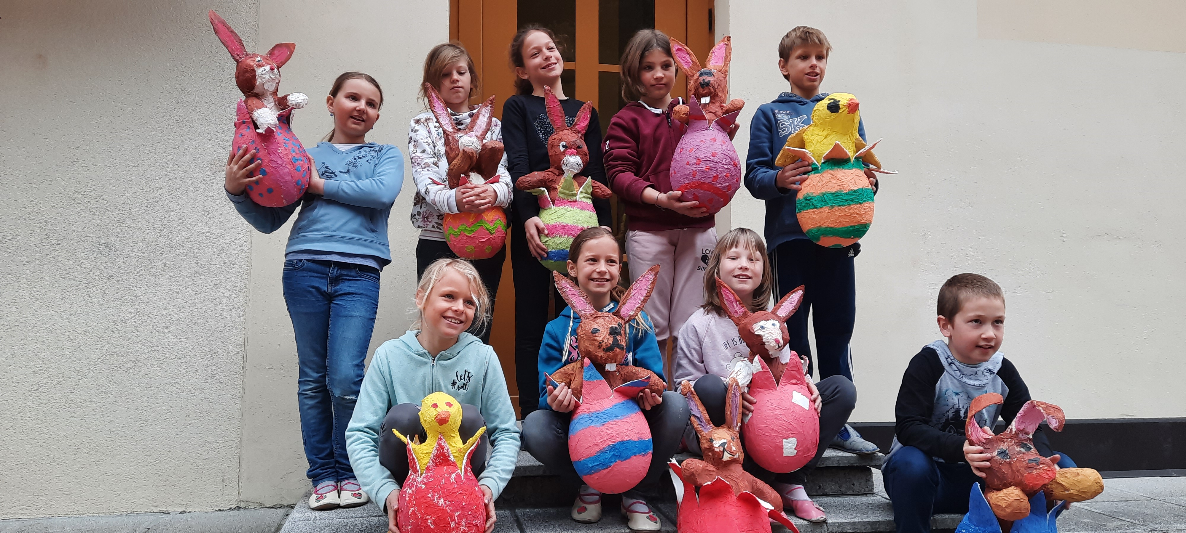 Učenci iz Soče so imeli v marcu in aprilu ustvarjalnice. Skupaj z Martino Berginc smo po pouku ustvarjali iz kartona, lesa, papirja in drugih materialov. Naredili smo igralno hišo, hlev , kokošnjak, drvarnico.  Izdelali pa smo tudi velikonočna jajčka z zajci ali piščanci.