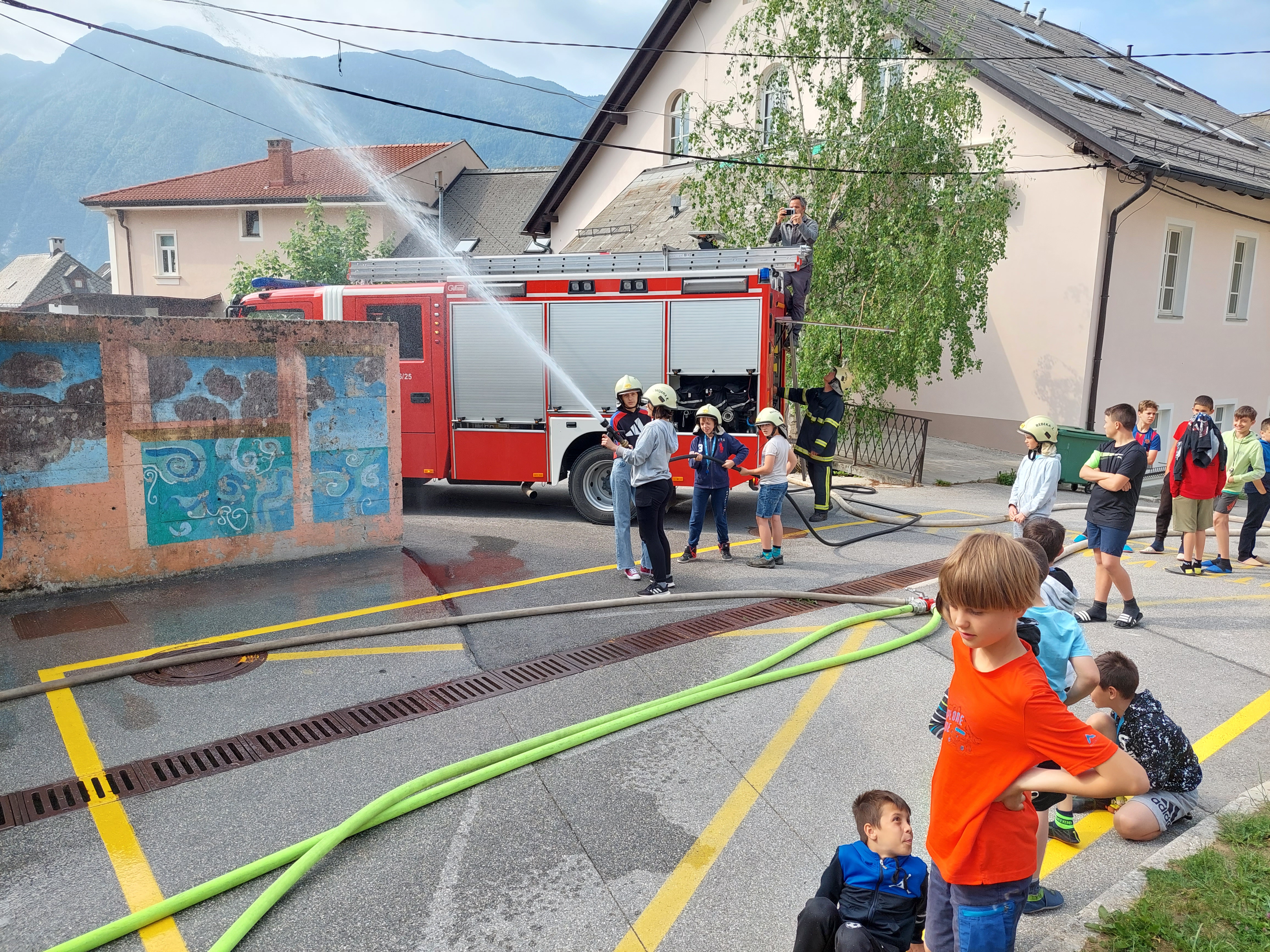 V letošnjem šolskem letu smo na centralni šoli v Bovcu prvič izpeljali vajo evakuacije. Vaja je bila nenapovedana. Kljub temu je akcija potekala brez večjih zapletov. Po opravljeni evakuaciji so naši učenci, člani PGD Bovec pokazali svojim vrstnikom nekaj gasilskih veščin. Za sodelovanje in organizacijo se zahvaljujemo predsedniku PGDBovec Matjažu Černuti in poveljniku Davorju Gašperčiču.