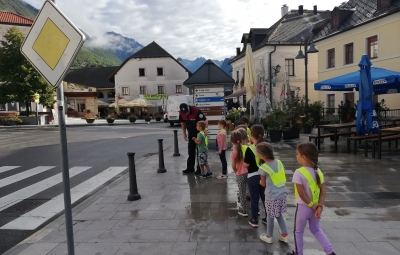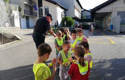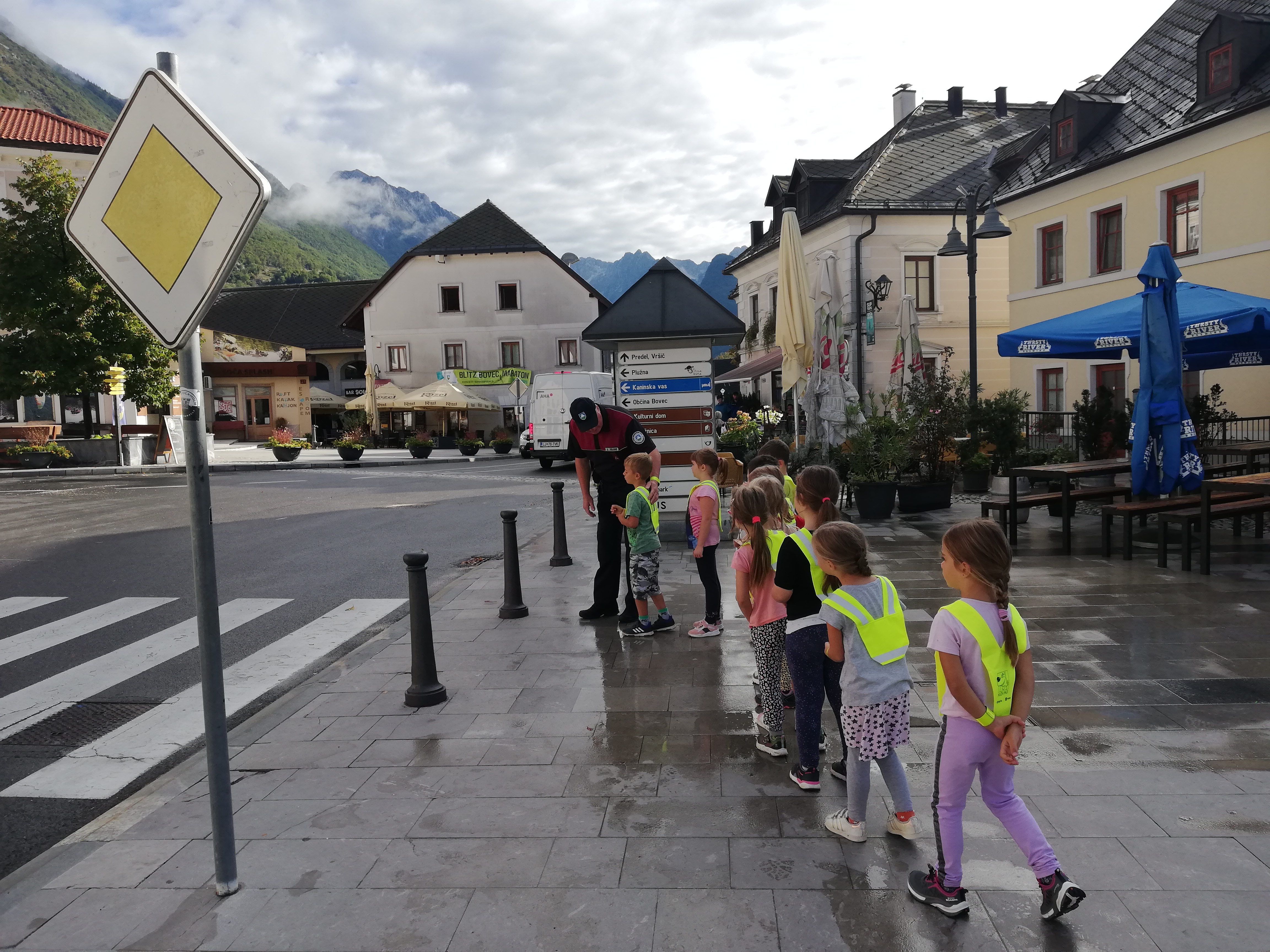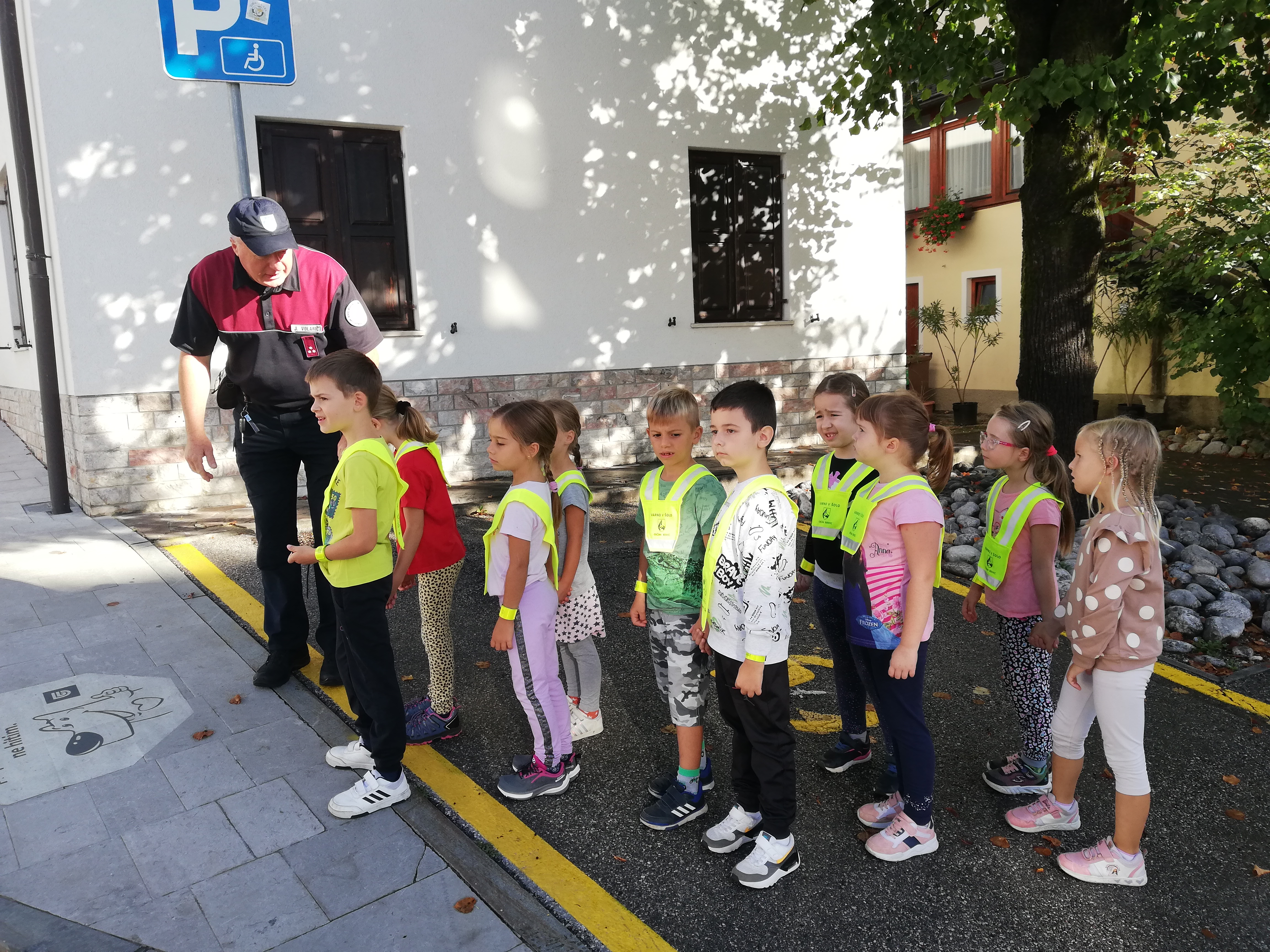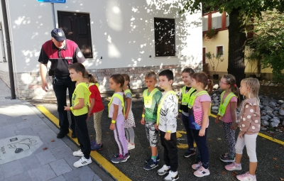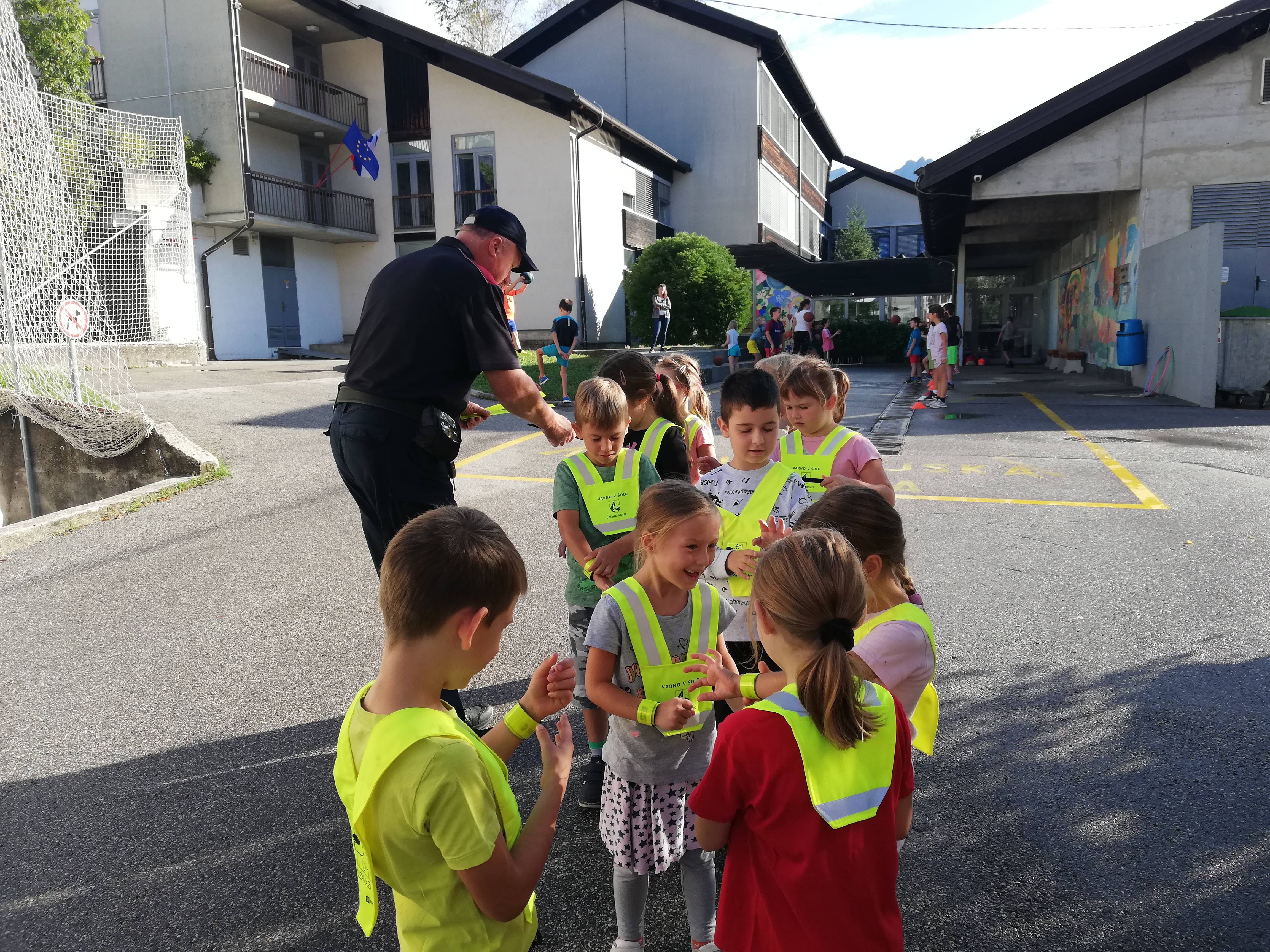 Učenci in učenke 1. razreda OŠ Bovec so se v torek, 19. 9. 2023, sprehodili po Bovcu z redarjem in spoznavali načela varnega obnašanja v prometu. Da bi bili mladi pešci še bolj vidni so v dar dobili kresničko in odsevni trak, ki ju bodo s pridom uporabljali.
