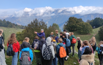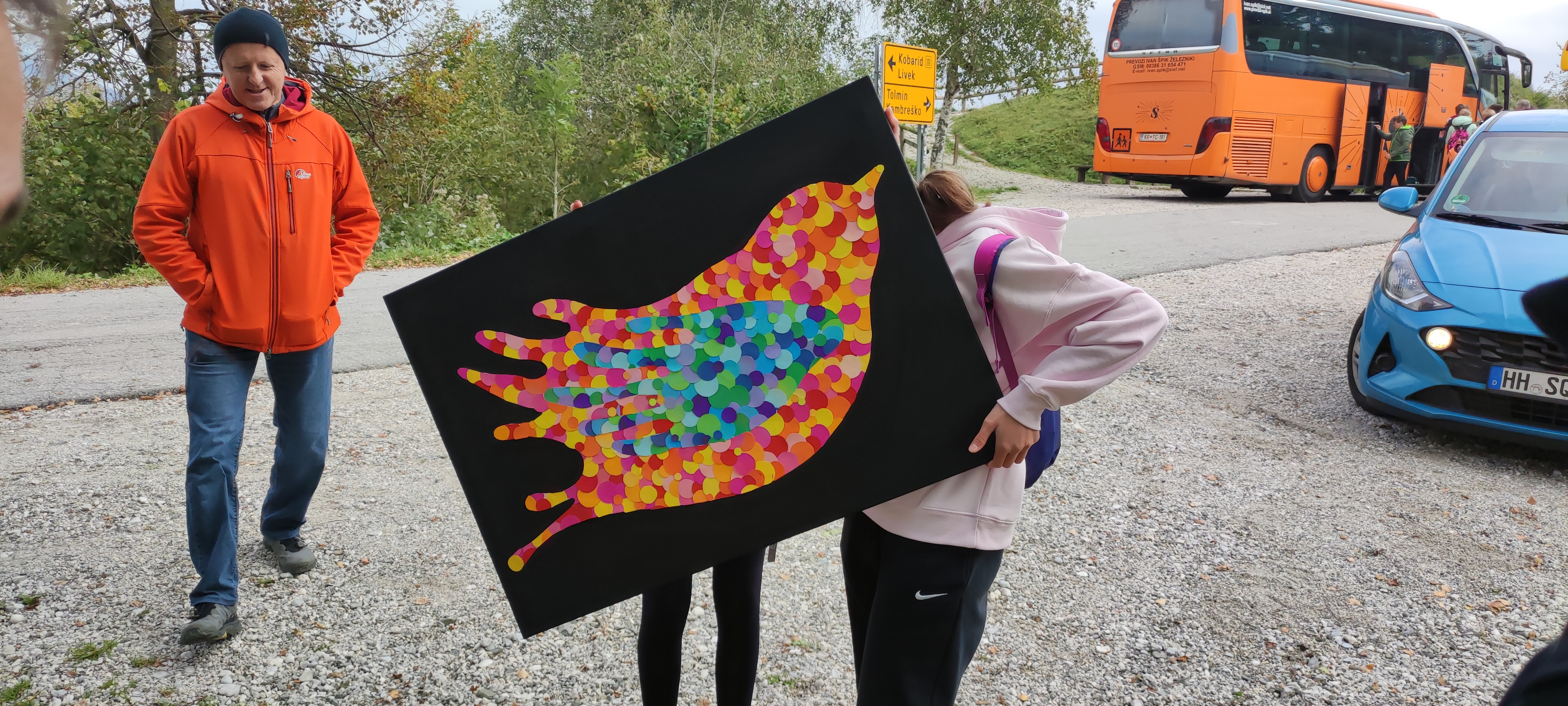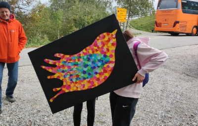 Izbrani učenci 9. razreda OŠ Bovec so se v ponedeljek, 7. 10. 2024, pod okriljem fundacije Pot miru udeležili srečanja različnih šol v muzeju na prostem na Kolovratu. Srečanje, ki je bilo zgodovinsko obarvano, je imelo v začetnem delu voden ogled nekdanjih bojinh položajev. Učenci so ob spremstvu vodnikov izvedeli, kako so vojaki doživljali življenje na fronti. V drugem delu so se učenci razdelili v mešane skupine in se vključili v različne delavnice, na katerih so pridno ustvarjali.