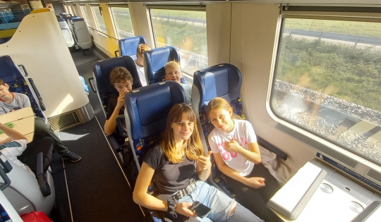 Učenci in učenke 7. razreda, ter učitelji spremljevalci smo zadnji dan šole v naravi izkoristili še za kopanje v Termah Ptuj. Da je bila pot nazaj domov nekoliko bolj zanimiva pa smo se do Ljubljane zapeljali z vlakom, kjer nas je že čakal avtobus za Bovec.