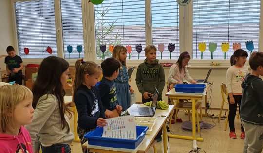 Učenci PŠ Žaga in PŠ Soča smo preživeli zanimiv tehniški dan, kjer smo se preizkusili v programiranju in izdelavi "robotov".