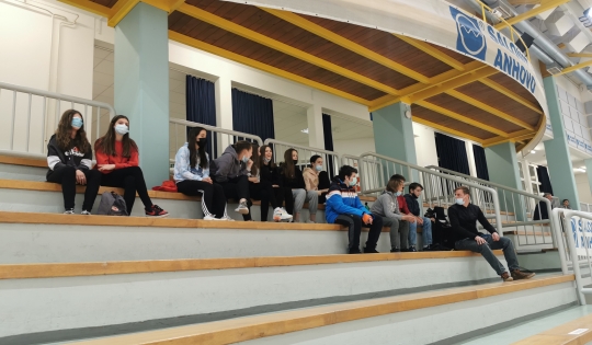 Učenci izbirnega predmeta Izbrani šport - ODBOJKA, so si v sredo, 9. 3. 2022, v športni dvorani v Kanalu, ogledali napeto tekmo med domačim klubom OK Salonit Anhovo in OK Krka.