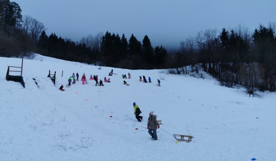 Za nami je zimski športni dan. Izkoristili smo lepo vreme in se odpravili na bližnji breg, kjer smo uživali na snegu. Učiteljici sta nas pri vožnji opazovali in v naslednjih dneh bomo izvedeli, če smo opravili sankaški izpit.