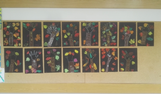 V 1. razredu vsako sredo pridno ustvarjamo. Jesen nam je že potrkala na vrata in tudi pred našo učilnico se lesketajo drevesa, polna pisanih listkov.